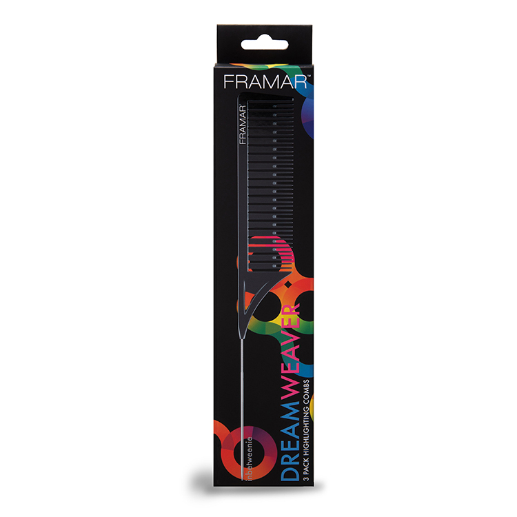 Set piepteni pentru delimitare șuvițe Framar Dreamweaver Comb Black 3 buc - un set de trei piepteni cu lățimi diferite ale dinților, cu ajutorul cărora iți poti împărți rapid și ușor părul în șuvițe mici. O singură mișcare vă permite să colectați mai multe fire absolut uniforme, gata de colorat. Fiecare pieptene este echipat cu o coadă-spiță din oțel inoxidabil. Un avantaj important al pieptenilor dreamweavercomb este absența încărcăturii statice în timpul lucrului și, ca urmare, prevenirea efectului de electrizare.