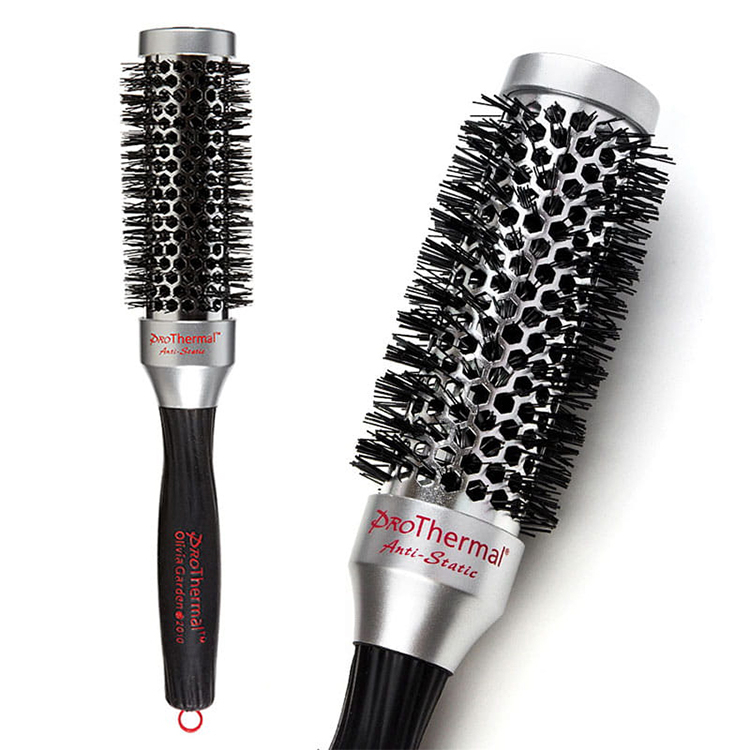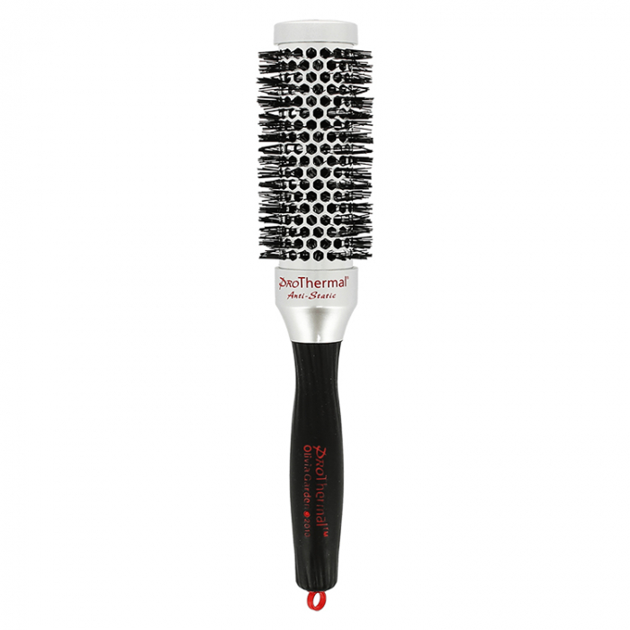 Pro Thermal Antistatic este o perie din plastic, cu manșon de aluminiu și fire de nylon.