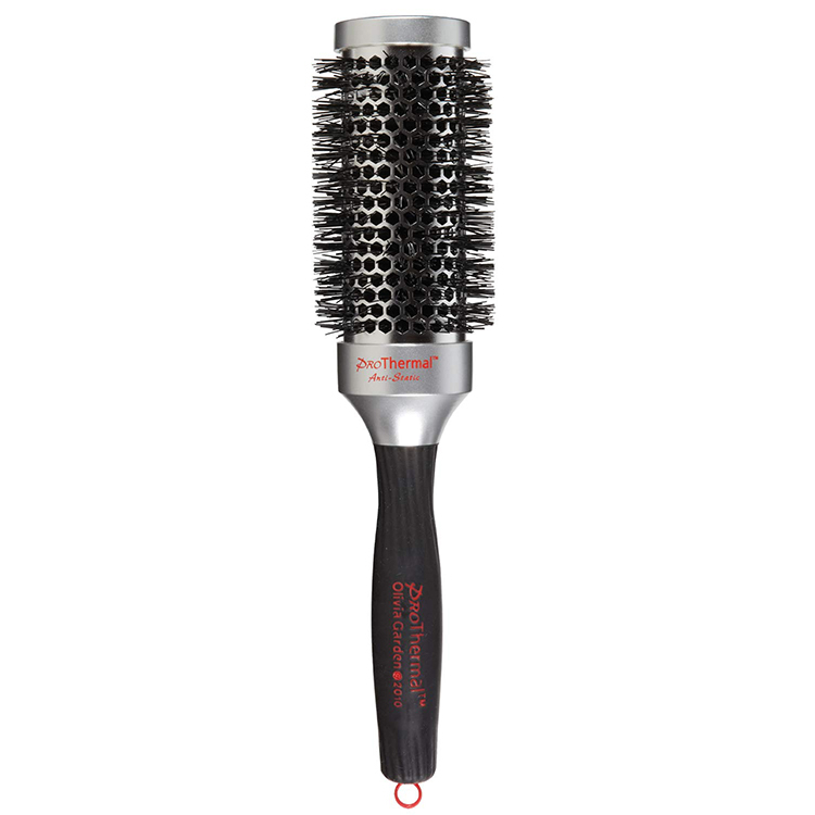 Pro Thermal Antistatic este o perie din plastic, cu manșon de aluminiu și fire de nylon.